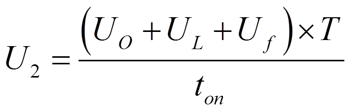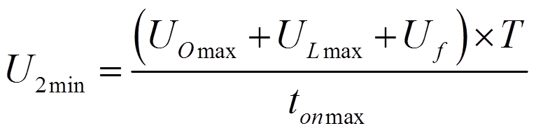 UL是輸出扼流圈在內(nèi)次級線圈的電壓降,Uf是輸出二極管的正向電壓。最低的次級電壓U2min為: