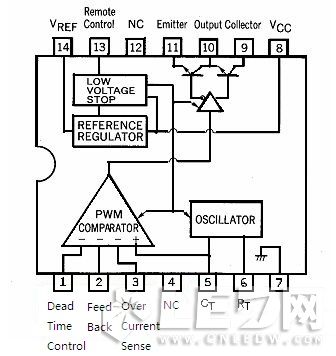 啟動電路由接在引腳8上R14接上外部電源為芯片工作提供Vcc=15V電源,而接在引腳9上是通過R10接在外部電路提供集電極電壓。
