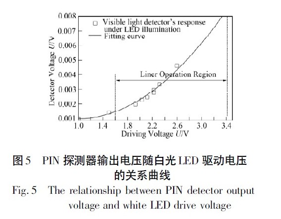 3. 4 可見光通信狀態(tài)時(shí)輸出電壓的線性區(qū)測試