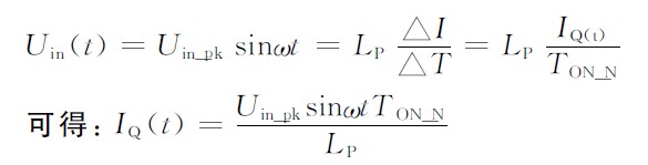 假設(shè)導(dǎo)通時(shí)間為常數(shù):TON_N = 常數(shù)(const),則上述MOS導(dǎo)通電流各點(diǎn)峰值IQ(sin)_pk組成的包絡(luò)就形成了正弦規(guī)律。