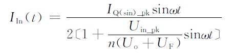 次級二極管瞬時(shí)峰值電流為ID(t),根據(jù)勵(lì)磁電流引起的磁通不能突變原則可知:ID(t)=n IQ(t)=nIQ(sin)_pksinωt,且等式LP =n2 LS成立,其中參數(shù)n為變壓器的初、次級匝數(shù)比。